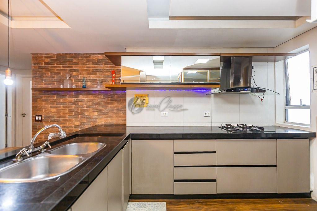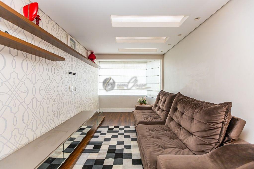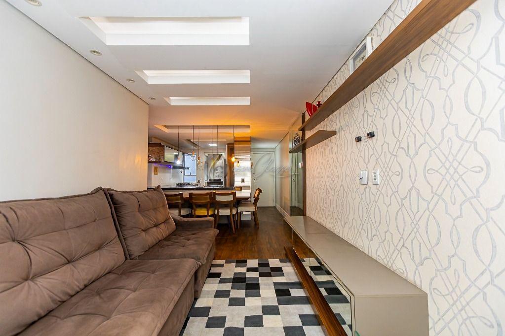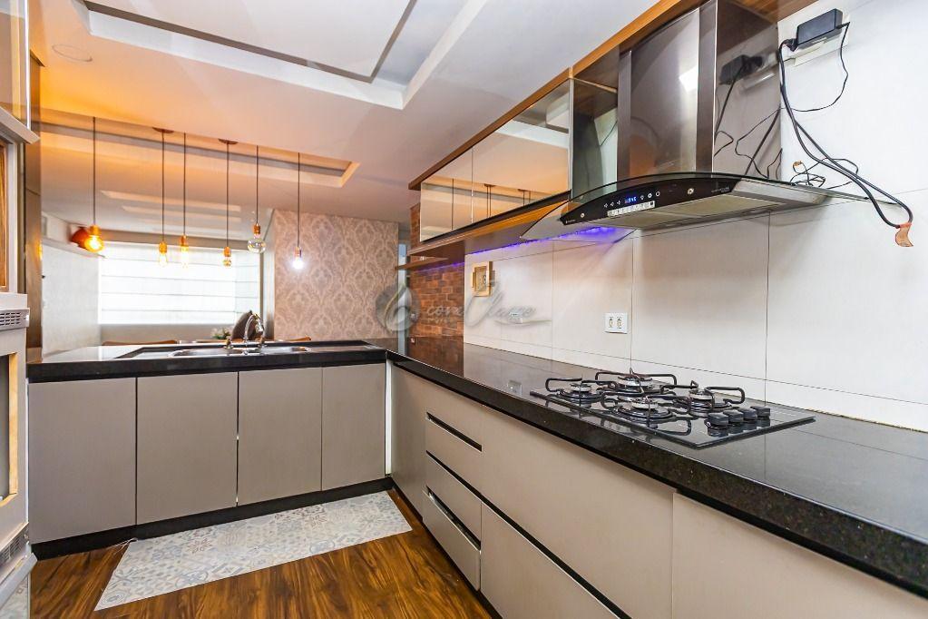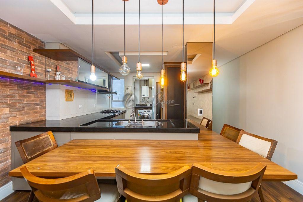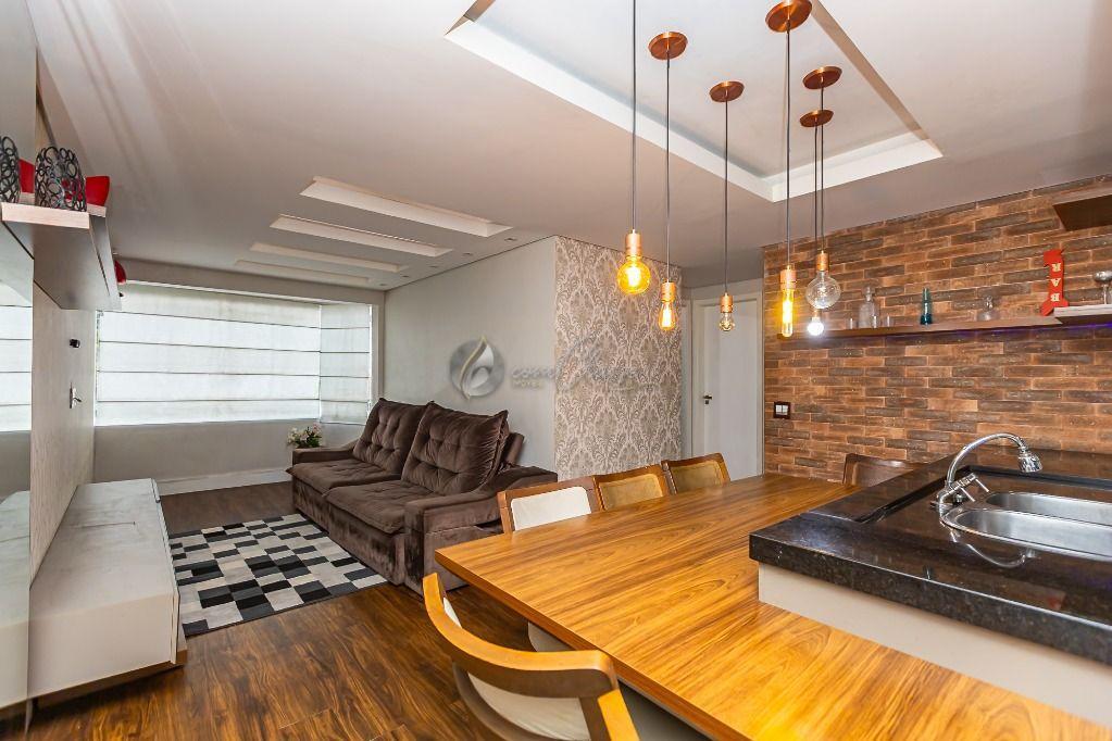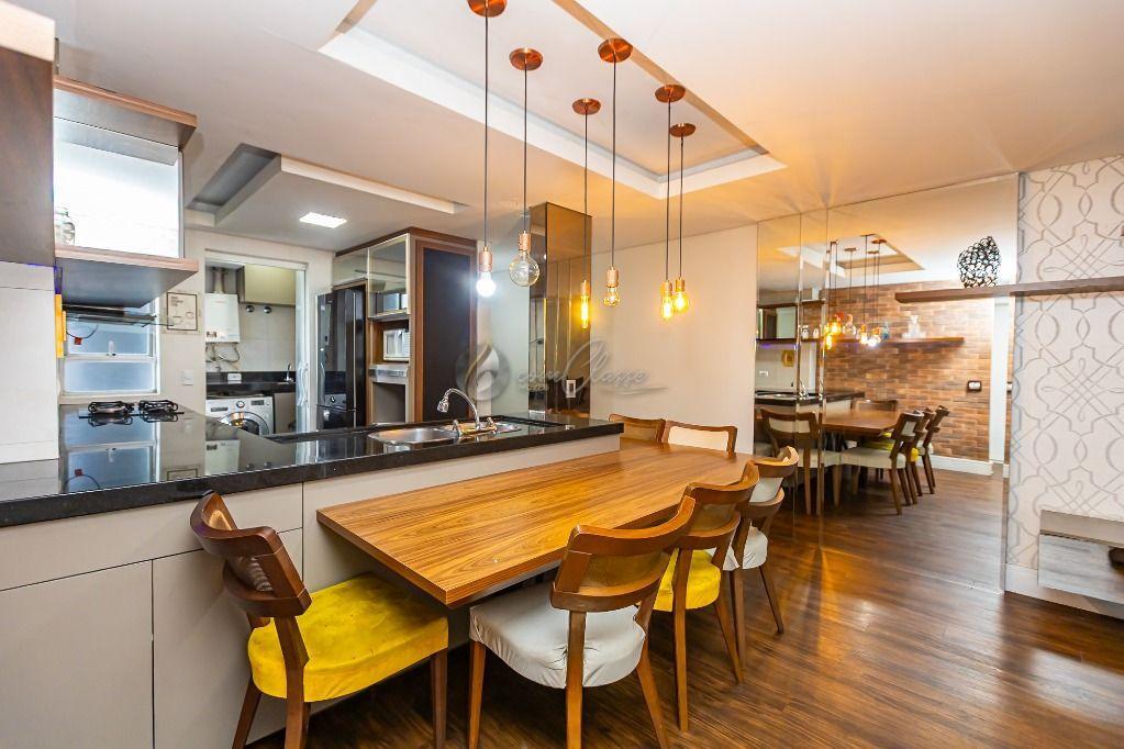 Living: Sala integrada à cozinha americana, criando um ambiente moderno e amplo para receber amigos e família.