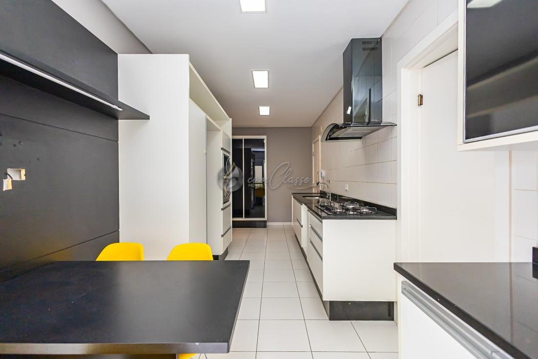 O imóvel possui armários planejados na cozinha e dormitórios, além de acabamentos que reforçam o padrão sofisticado da unidade: