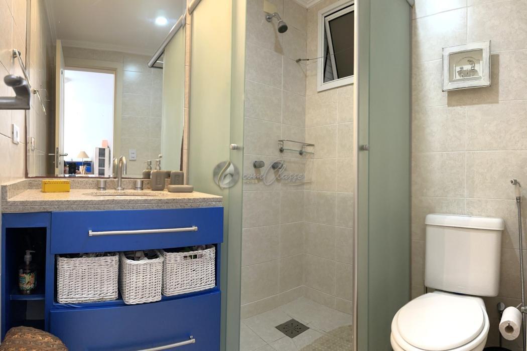 * Banheiro com armário, tampo em granito e box