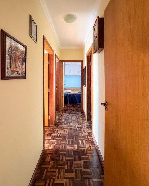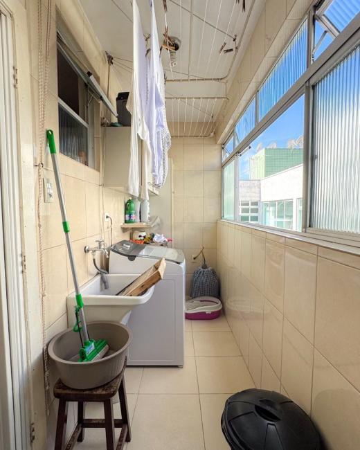 O apartamento está em sua configuração original de planta: sala para dois ambientes; cozinha (possibilidade de retirar parede e integrar com a sala); lavanderia; 3 quartos; 2 banheiros. Pisos taco de madeira na sala e nos quartos, pisos de porcelanato na cozinha e nos banheiros.