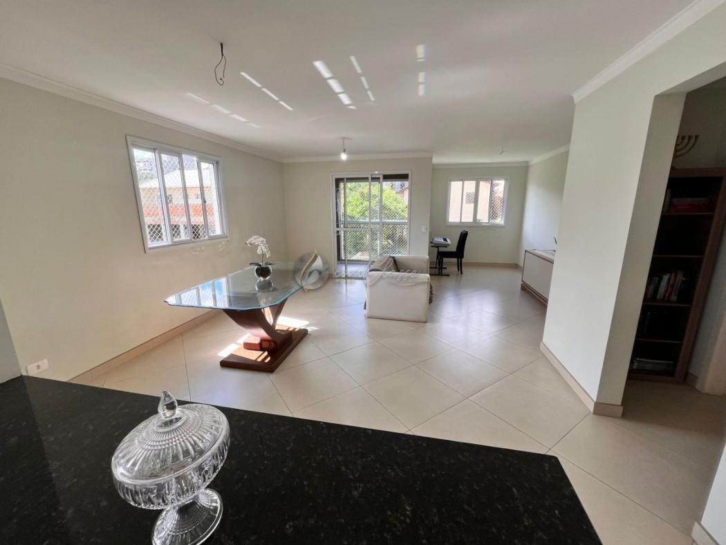 Sala ampla composta por três ambientes integrados, com possibilidade de converter um deles em terceiro quarto