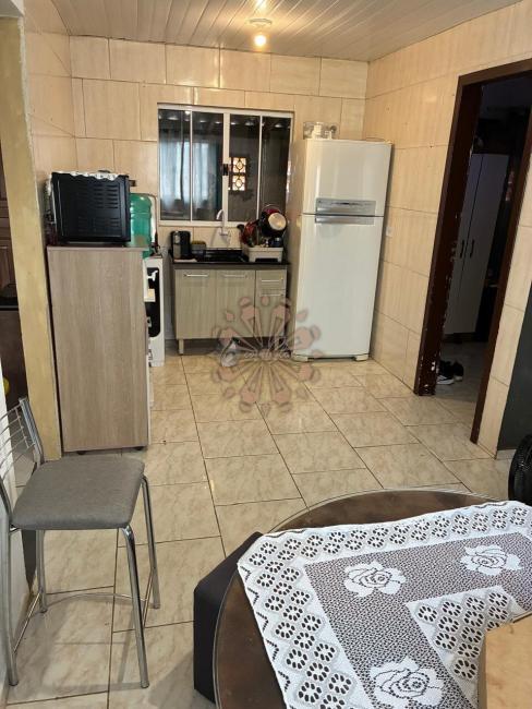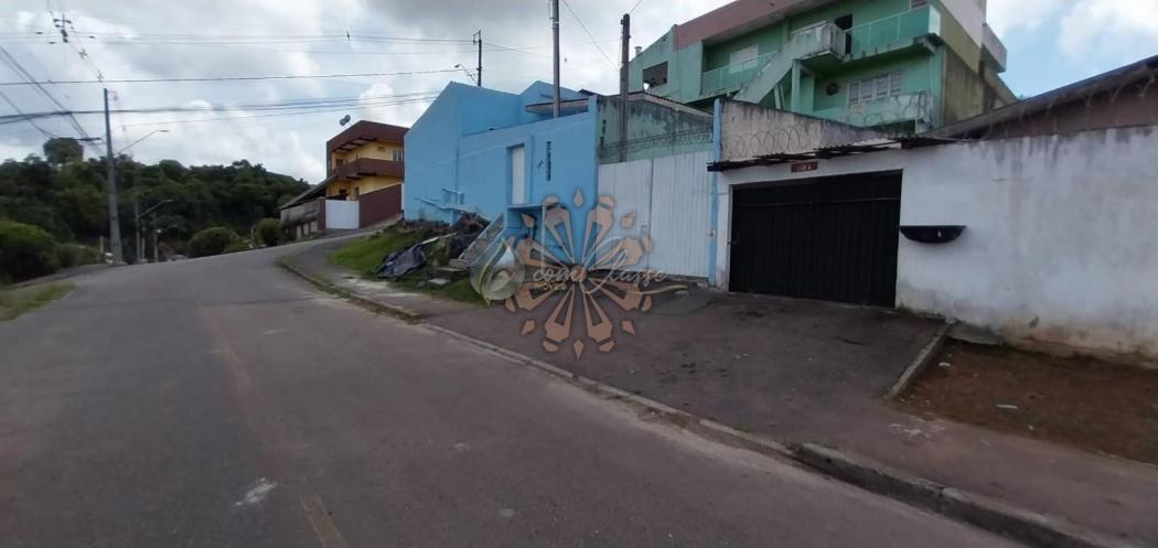 Terreno com 360m² (12x30m) localizado em Campo Magro, contendo duas casas em alvenaria com entrada independente pela lateral. Casa 1 (52m²):