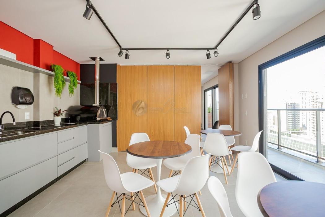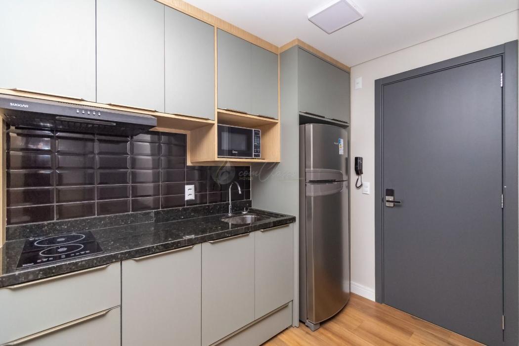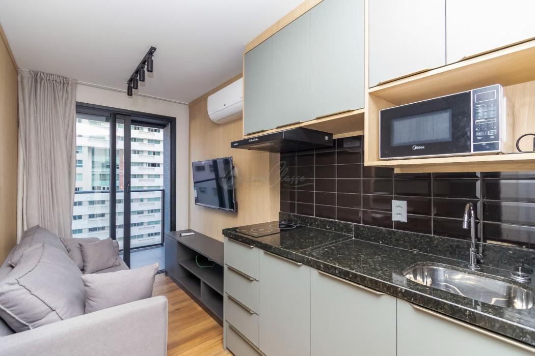 Com aproximadamente 30m² privativos, o imóvel conta com ambiente integrado, mobiliado com móveis planejados de excelente padrão, que otimizam o espaço com funcionalidade e bom gosto. A cozinha, quarto e sala se conectam de forma inteligente, criando uma atmosfera acolhedora e versátil. O banheiro é moderno e bem ventilado.