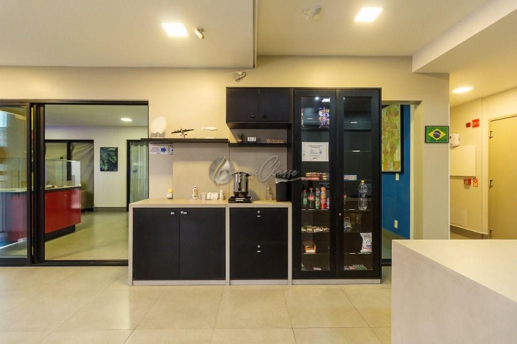 No piso térreo conta com área de recepção, lavanderia, área de estar, área para fumantes, banheiro, sala de rouparia, sala de estoque diversos. 01 elevador que atende todos os pisos, da marca ThyssenKrupp, com capacidade para até 08 pessoas.