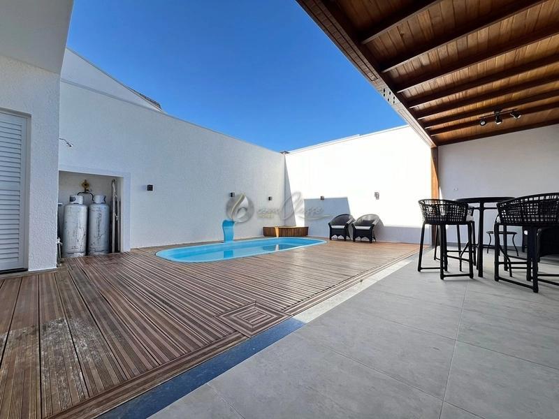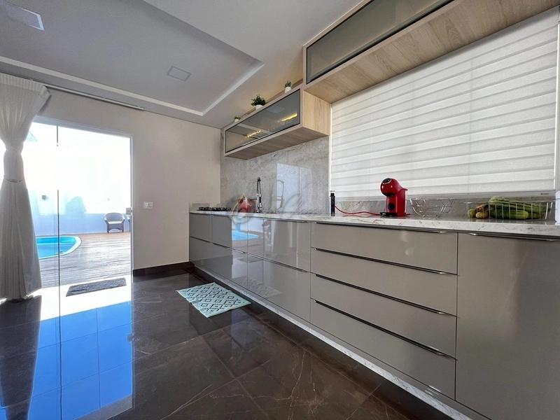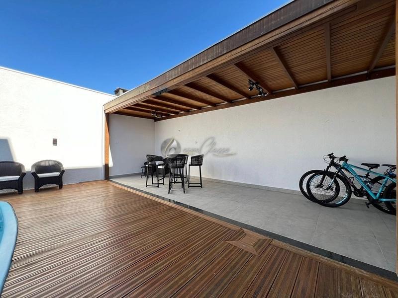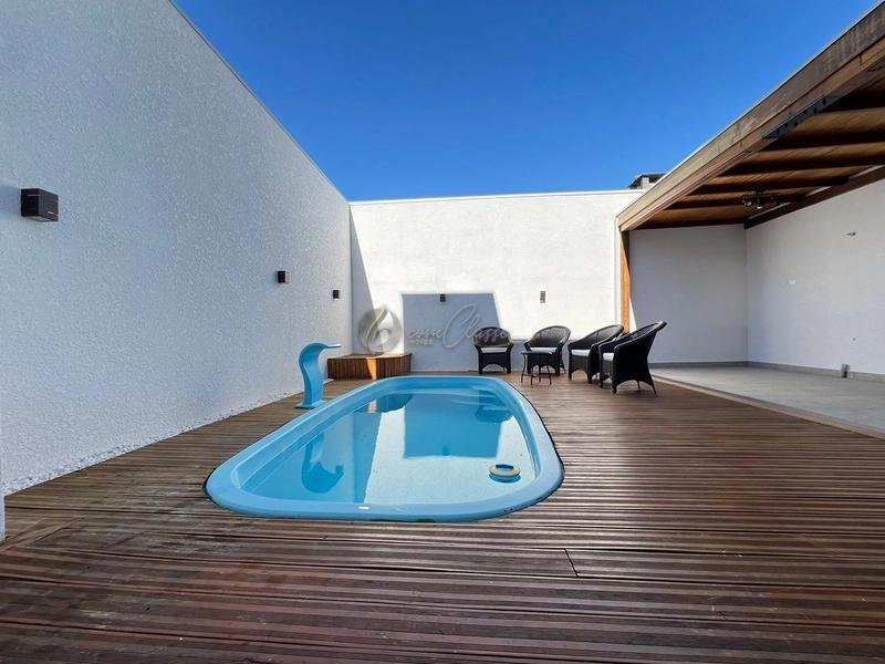 Nos fundos, o espaço gourmet integrado à piscina cria o cenário ideal para receber amigos e familiares, proporcionando momentos de lazer e descontração.