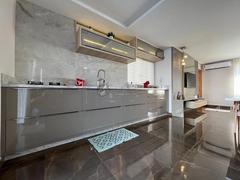 Com três dormitórios, sendo uma suíte e outro transformado em um amplo closet (de fácil reversão), este imóvel foi cuidadosamente decorado e mobiliado, destacando-se pelos acabamentos de alto padrão: pisos em porcelanato, teto rebaixado em gesso e um projeto de iluminação que valoriza cada ambiente.