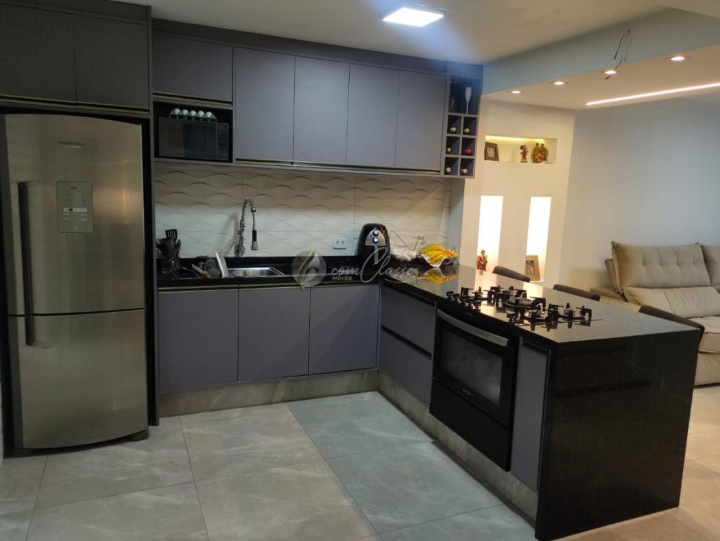 - Cozinha com móveis planejados, bancada e pia;