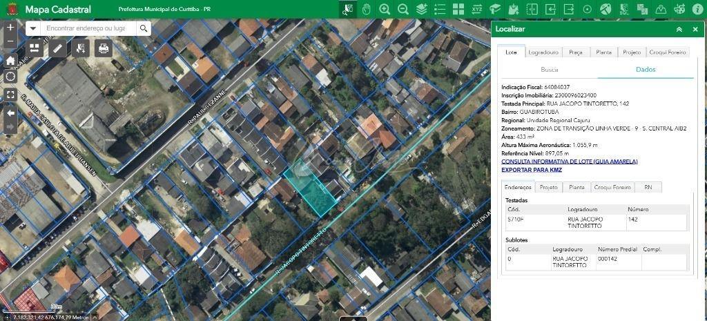 Terreno a venda no bairro Guabirotuba, localizado na Rua Jacopo Tintoretto no bairro Guabirotuba, estuda pegar imovel de menor valor